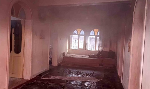 Yangının çıkış sebebi araştırılırken, evde hasar meydana geldi.