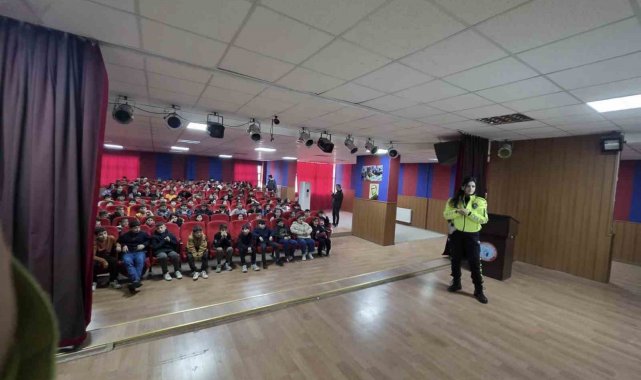 Mardin'in Artuklu ilçesindeki ortaokul öğrencilerine trafik eğitimi verildi.