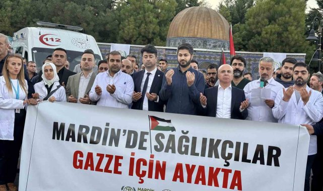 Mardin'de sağlık çalışanları tarafından Gazze'deki sağlıkçılara destek amacıyla basın açıklaması yapıldı.