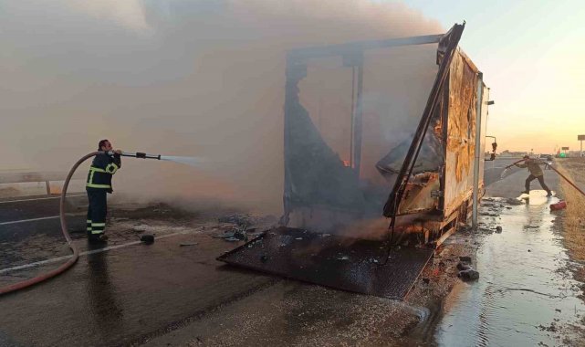 Mardin'de seyir halindeyken alev alan kamyon, kullanılmaz hale geldi.