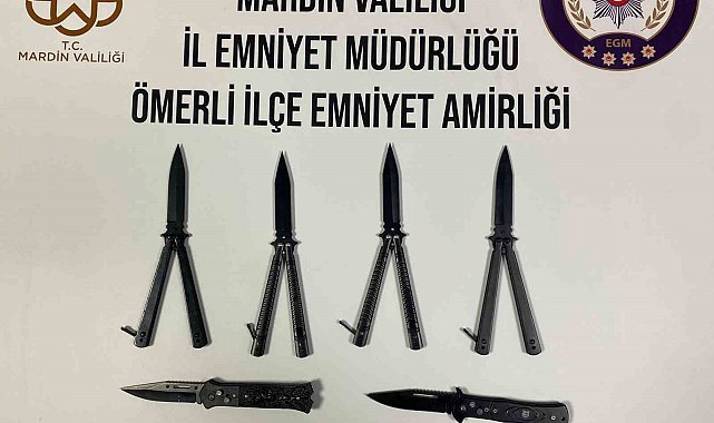 İl Emniyet Müdürlüğünden yapılan açıklamada, Ömerli İlçe Emniyet Amirliği ekiplerince ilçe genelinde düzenlenen uygulamalarda, seyyar satış yapan bir kişinin sattığı ürünler arasında 4 adet kelebek ve 3 adet sustalı bıçak bulundu. Bıçaklara el konulurken şahıs hakkında, 6136 sayılı kanun kapsamında adli işlem başlatıldı.