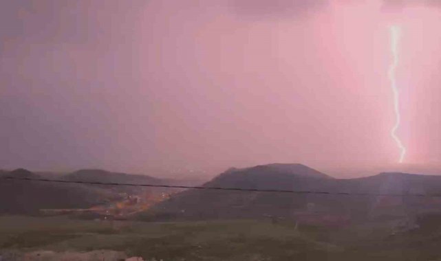 Mardin'de etkili olan gök gürültülü sağanak yağış nedeniyle şimşek ve yıldırımlar geceyi aydınlattı, o anlar kameraya yansıdı.