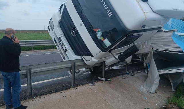 Mardin'de sürücüsünün kontrolünden çıkan tır bariyerlere çarptı. Kaza maddi hasarla atlatıldı.