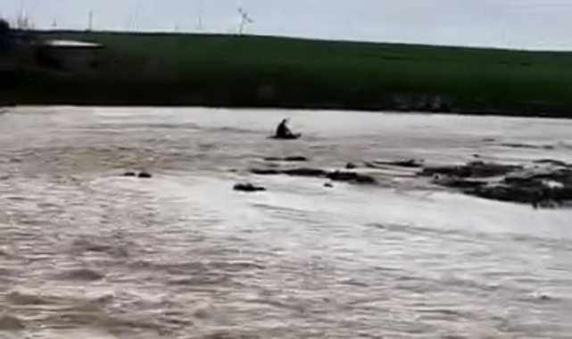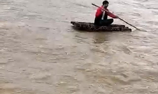Mardin'de son günlerde etkili olan sağanak yağışlar, bölgede uzun zamandır görülmeyen manzaralara neden oldu. Yaklaşık 40 yıldır kurak olan dere yatakları yeniden suyla dolarken, bazı bölgelerde taşkınlar meydana geldi. Derik ilçesi Kurudere Mahallesi'ndeki Büyükdere de yağışların ardından debisini ciddi şekilde artırdı. Taşan derede dikkat çeken anlar yaşandı. Mahallede yaşayan bir vatandaş, derede kendi imkanlarıyla yaptığı sal ile suyun üzerinde ilerledi. Tehlikeye rağmen sal ile derede gezinti yapan vatandaşın o anları cep telefonu kamerasına yansıdı.