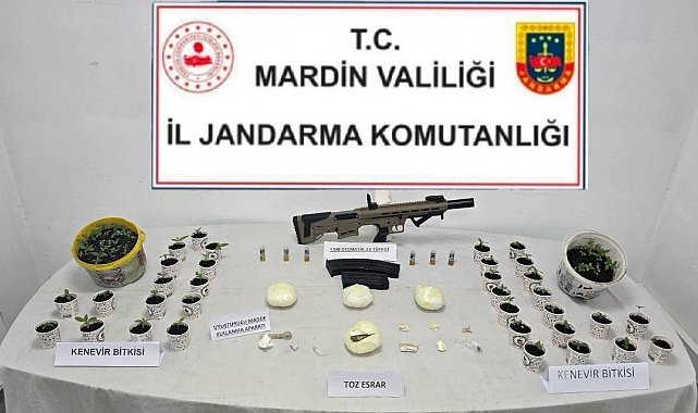 Mardin İl Jandarma Komutanlığı KOM Şube Müdürlüğü ve Midyat İlçe Jandarma Komutanlığı ekiplerince düzenlenen uyuşturucu operasyonunda adresleri belirlenen 3 şüpheli gözaltına alındı. Şüphelilerin adreslerinde ve üzüm bağında yapılan aramalarda 1 kilo 200 gram toz esrar, 161 kök kenevir bitkisi, 1 av tüfeği ile 1 adet uyuşturucu madde kullanma aparatı ele geçirildi. Gözaltına alınan 3 şüpheli, işlemlerinin ardından çıkarıldıkları mahkemece tutuklanarak cezaevine gönderildi.
