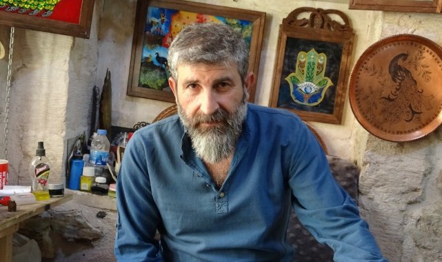 Mardin'de 5 yaşından beri bakır işleme sanatıyla uğraşan Tacettin Toparlı, 45 yıllık ömrünün neredeyse tamamını bakıra motifler çizerek geçirdi.