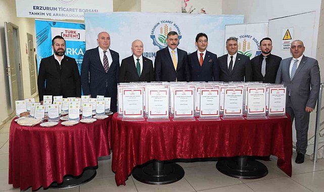 Erzurum Valisi Mustafa Çiftçi, Büyükşehir Belediye Başkanı Mehmet Sekmen, Tekman Kaymakamı Hasan Raşit Taşkın, İspir Belediye Başkanı Ahmet Coşkun, Kültür ve Turizm İl Müdürü Ahmet Yer, ETSO Başkanı Saim Özakalın, Sanayi ve Teknoloji İ Müdürü Ender Cihantimur, Kosgeb İl Müdürü Lütfullah Göktaş, Kamu Kurum Kuruluşları ile STK ve Sektör temsilcilerinin katılımıyla gerçekleştirilen program çerçevesinde "Coğrafi İşaretli Ürünler" noktasında Türkiye'de 3. kent olan ve en çok Coğrafi Tescil İşaret Belgesine sahip kurum olan Erzurum Ticaret Borsası Yönetim Kurulu Başkanı Hakan Oral'a, Türk Patent ve Marka Kurumu Başkanı tarafından, Erzurum Patates Boranisi, Erzurum Babaanne Pastası, Erzurum Kuru Kayısı Kaysefesi, Hınıs Köftesi Coğrafi İşaret belge takdiminde bulundu.