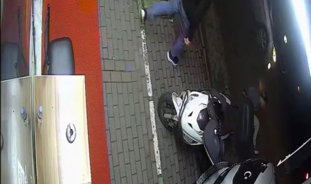 Bursa'da bir marketten alışveriş yaptıktan sonra dışarı adım atan kişiye motosiklet çarptı. İlginç kaza güvenlik kamerasına saniye saniye yansıdı.