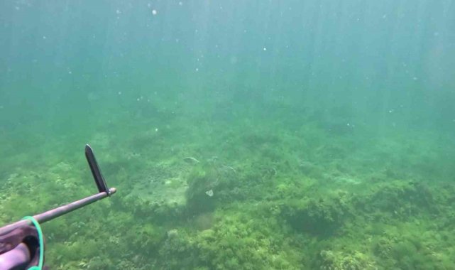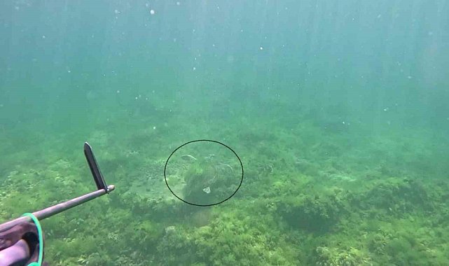 Tuzla açıklarında zıpkınla balık avcılığı yapan Ulaş Kocabaş, Marmara Denizin'in derinliklerinde koruma altında bulunan caretta carettayı ilk kez görüntüledi.
