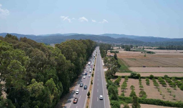 Marmaris-Gökova yolunda 7 kilometrelik araç kuyruğu havadan görüntülendi