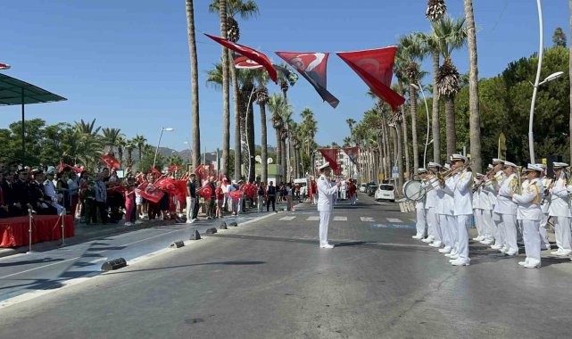 Aksaz Deniz Üs Komutanlığı Askeri Bandosu eşliğinde saygı duruşunun ardından İstiklal Marşı okundu. Cumhurbaşkanı Recep Tayyip Erdoğan'ın mesajının okunmasının ardından Türk Silahlı Kuvvetleri adına günün anlam ve önemini belirten konuşma yapıldı. Şiirler ve Aksaz Askeri Bandosu konseriyle devam eden tören, Jandarma, Deniz Kuvvetleri, Emniyet Teşkilatı, okullar ve spor kulüplerinin katıldığı geçit töreniyle sona erdi. Kutlamalara Marmaris Kaymakamı Nurullah Kaya, Aksaz Garnizon Komutanı Tuğamiral Hamdi Abanoz, Belediye Başkanı Acar Ünlü, Marmaris Cumhuriyet Başsavcısı Vekili, İlçe Emniyet Müdürü Samed Seyhan, İlçe Jandarma Komutanı Binbaşı Berker Dongul, Marmaris Baro Temsilcisi Av. Buğra Yavuz, kurum müdürleri, gaziler, şehit yakınları, siyasi parti ve STK temsilcileri ile çok sayıda vatandaş katıldı.