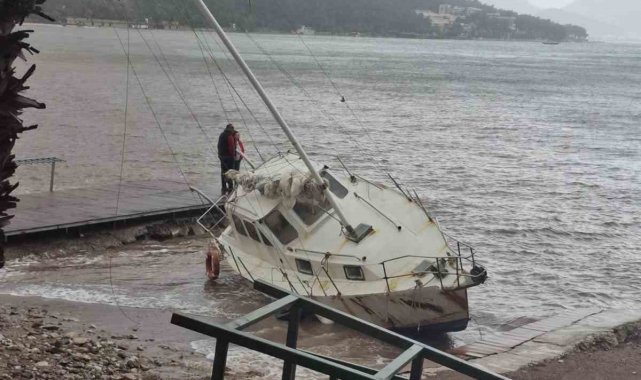 Muğla'nın Marmaris ilçesinde etkili olan şiddetli yağış ve fırtına hayatı olumsuz etkiledi. Tekneler kıyıya sürüklenirken, ev ve iş yerlerinin çatıları zarar gördü.