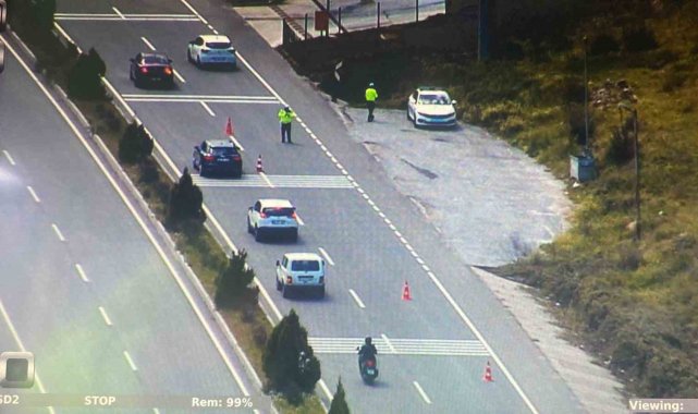 Muğla İl Emniyet Müdürlüğü'ne bağlı ekipler, Dalaman-Muğla ve Muğla-Marmaris karayollarında helikopter destekli trafik denetimi gerçekleştirdi.