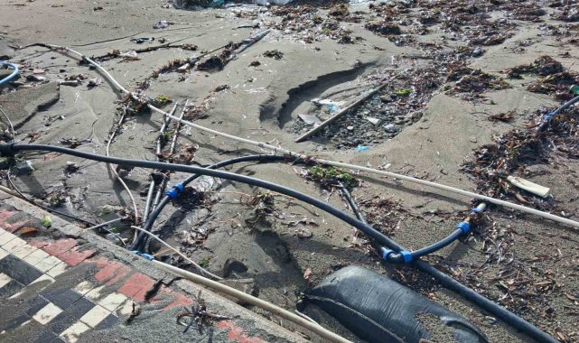Muğla'nın Marmaris ilçesinde etkili olan fırtına ve sağanak sonrasında denizden taşınan çöp ve atıklar kıyıya vurdu.