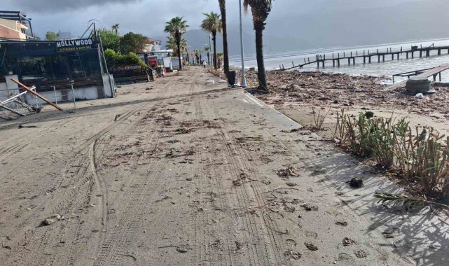 Fırtınanın etkisiyle denizden sahillere taşınan atık ve çöpler de dikkat çekti. Sabahın ilk saatlerinden itibaren Marmaris Belediyesi ekipleri, sahil bandında temizlik çalışması başlattı. Büyük iş makineleri ve temizlik işçileriyle yürütülen çalışmalarda kıyıya vuran atıkların kısa sürede toplandığı görüldü.