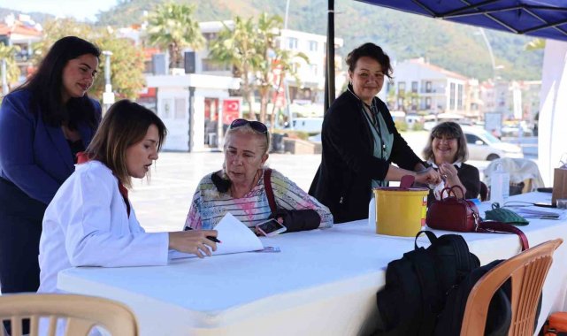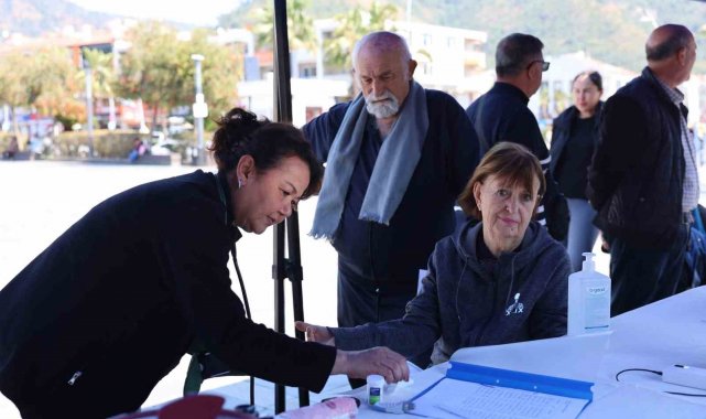 Marmaris Belediyesi'nin düzenlediği 'Sağlıklı Yaş Alma' etkinliğinde 30 yaş üstü vatandaşlara vücut analizi, kan şekeri ve tansiyon ölçümü ile beslenme danışmanlığı hizmeti sunuldu.