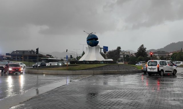 Marmaris'te sabah saatlerinden itibaren etkisini gösteren şiddetli rüzgâr ve yer yer sağanak yağış hayatı olumsuz etkiledi
