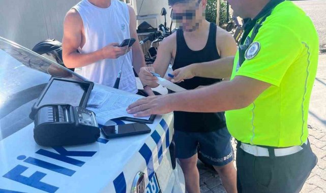 Muğla'nın Marmaris ilçesinde motosikleti tehlikeli şekilde kullanan 2 sürücünün o anları cep telefonu kamerasına yansırken, trafik ekipleri ise 2 motosiklet sürücüsüne para cezası uyguladı.