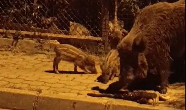Marmaris'in Armutalan Mahallesi Tokatlılar Sitesi önünde akşam saatlerinde yaşanan olay, görenleri dehşete düşürdü. İlçe merkezine kadar inen yaban domuzları, Tokatlılar Sitesi önünde, kovalamaca sonucu yakaladıkları kediyi öldürdü. Domuz ve yavrularının kediyi parçalayıp yediği anlar, çevredeki vatandaşlar tarafından görüntülendi. Sosyal medyada paylaşılan görüntüler kısa sürede tepki topladı. Vatandaşlar, "Yetkililer ne zaman önlem almayı düşünüyor" diyerek duruma tepki gösterdi. Özellikle gece saatlerinde sık sık mahallelerde görülen yaban domuzlarının can güvenliklerini de tehdit ettiğini belirten vatandaşlar duruma bir an önce çare bulunmasını istedi.