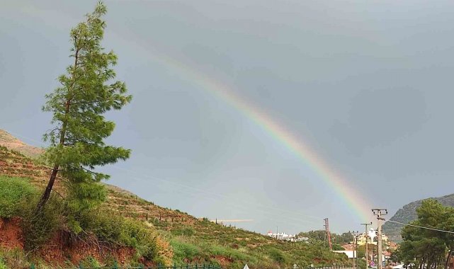 Marmaris'te yağışla birlikte oluşan gökkuşağı mest etti