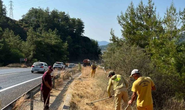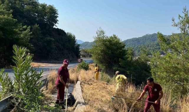 Marmaris'te yol kenarlarında yangınlara önlemler dahilinde ot temizliği yapıldı