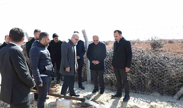 Ömerli Kaymakamı Furkan Çakır, Ömerli Belediye Başkanı Hüsamettin Altındağ, MARSU Genel Müdürü Murat Erçin ve Plan Proje Daire Başkanı Güven Bayraktar ile birlikte sondaj kuyusu çalışmalarını yerinde inceledi.