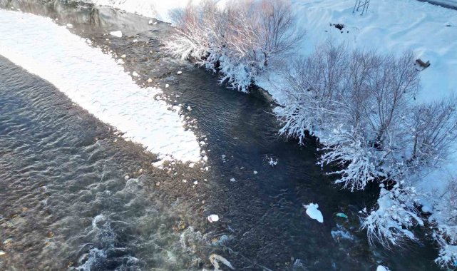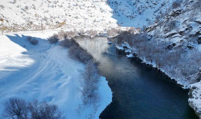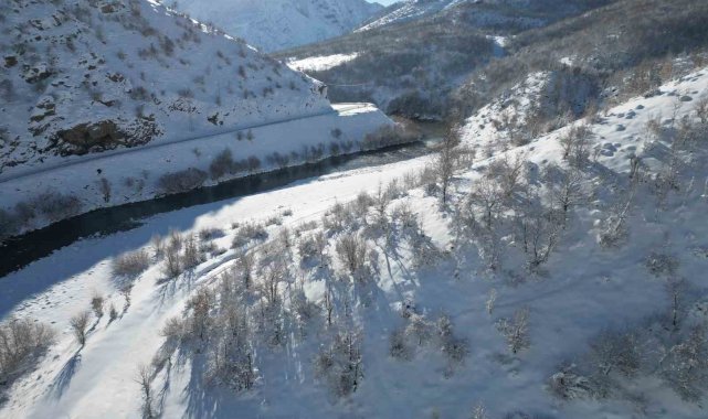 Şırnak'ta kar yağışıyla beraber oluşan masalsı görüntüler görenleri hayran bıraktı. Kar ve su bir anda havadan görüntülendi.