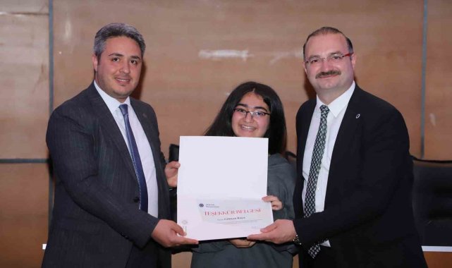 Kültür Merkezi Prof. Dr. Kemal Bıyıkoğlu Salonunda düzenlenen ödül törenine Rektör Hacımüftüoğlu'nun yanı sıra okul yöneticileri, öğretmenler, öğrenciler ve veliler yoğun ilgi gösterdi.