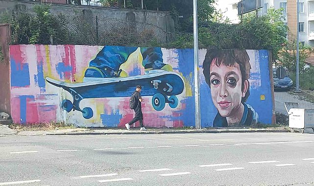 Mattia Ahmet ve kaykayı Edirne'de duvara resmedildi