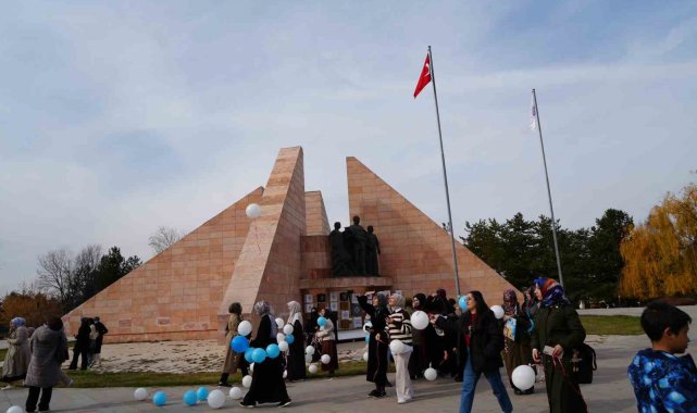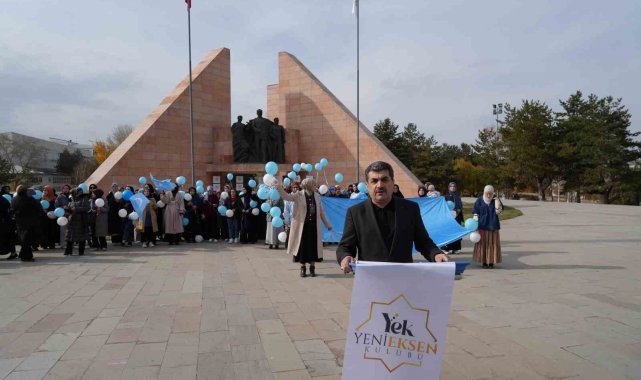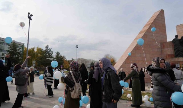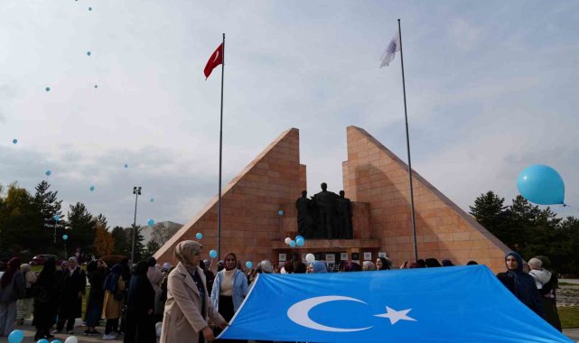 Atatürk Üniversitesi İlahiyat Fakültesi öğrencileri, gökyüzüne mavi beyaz balonlar bırakarak Doğu Türkistan'da yaşanan zulme dikkat çekti.