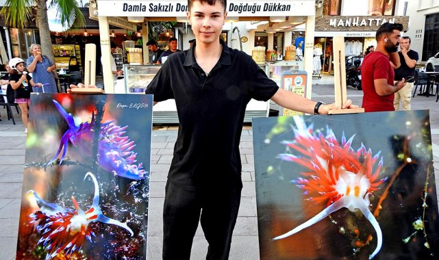 Dalgıç eğitmeni babası ve ağabeyinin izinden giderek deniz altına merak saran 15 yaşındaki Doğa Ergün, objektifini mavi derinliklerdeki hayatlara çevirdi. Doğa, su altı dünyasını kendi gözünden aktardığı fotoğrafları, Çeşme Cumhuriyet Meydanı'nda sanatseverlerle buluştu.