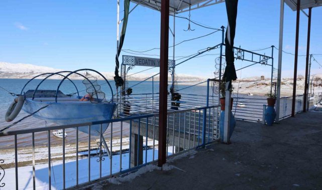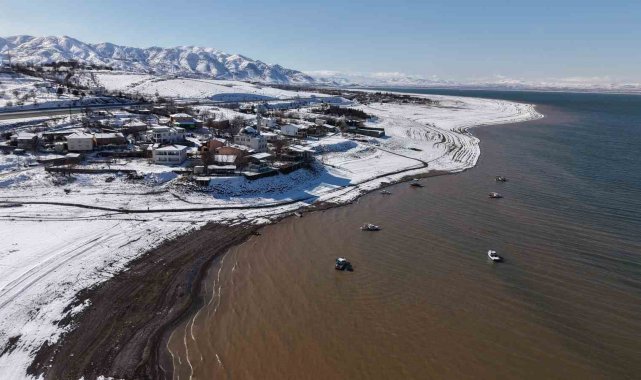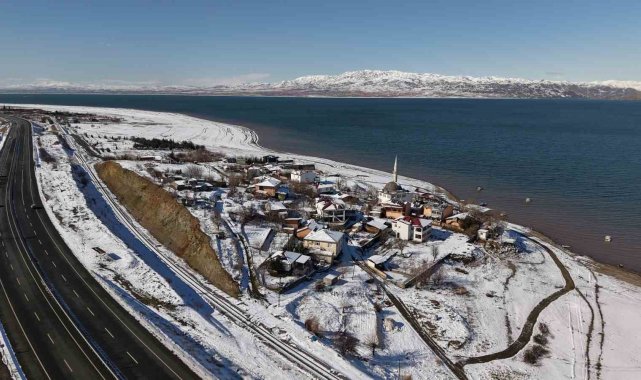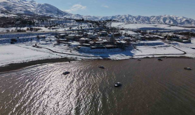 Elazığ'da Keban Baraj Gölü havzasında yer alan Aşağı İçme köyü, baraj suyu ve kar görüntüsüyle ortaya eşsiz manzaralar sundu.
