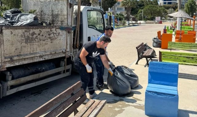 Aydın'ın Didim ilçesinde saha çalışmalarını sürdüren belediye ekipleri, Mavişehir sahilini temizledi.