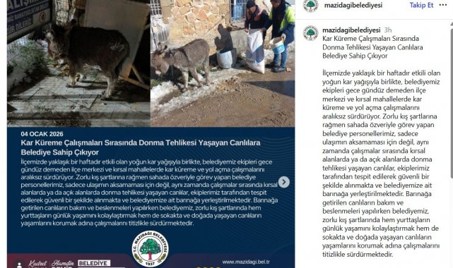 Mardin'in Mazıdağı ilçesinde, Belediyenin yoğun kar yağışının ardından sahipsiz bir sıpaya sahip çıkıldığına dair yaptığı sosyal medya paylaşımları kamuoyunda tartışmaya neden oldu. Belediyenin paylaşımlarının ardından söz konusu hayvan yeniden sokağa bırakıldı.