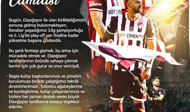 Elazığspor'un yollarını ayırdığı Mehmet Ablay, sosyal medya hesabından bir ayrılık mesajı yayımladı.