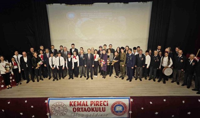 İstiklal Marşı'nın Büyük Millet Meclisi'nde kabul edilişinin 104'üncü yıl dönümü kapsamında Bandırma Kemal Pireci Ortaokulu tarafından Barış Manço Kültür Merkezi'nde resmi tören gerçekleştirildi. Etkinliğe Bandırma Kaymakamı Engin Aksakal, Bandırma Belediye Başkan Yardımcısı Niyazi Yeloğlu, şehit aileleri, gaziler, okul müdürleri, öğrenciler ve öğretmenler katıldı.