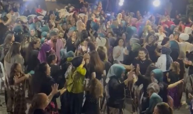 Köylü kadınların şalvar gecesine katılan ünlü şarkıcı şalvarlı kadınlarla birlikte coştu şarkı söyledi.