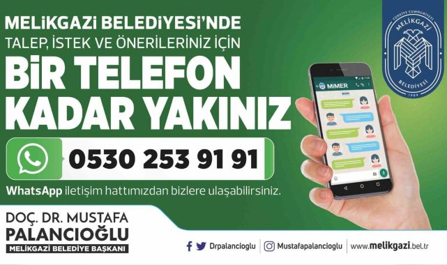Vatandaşların ihtiyaçlarına yönelik çözüm odaklı hizmetlerine yenilerini ekleyen Melikgazi Belediye Başkanı Doç. Dr. Mustafa Palancıoğlu; "Melikgazi'mizde vatandaşlarımızdan gelen her talep hizmetlerimizi hayata geçirme noktasında bizlere kılavuzluk yapıyor. Vatandaşlarımızın hızlı bir şekilde belediyemize ulaşabilmeleri adına whatsapp ihbar hattımız büyük rol oynuyor. 7 gün 24 saat boyunca hemşehrilerimiz talep ve önerilerini bizlere anında ulaştırabiliyorlar. 1 yıl içerisinde whatsapp ihbar hattımızdan 58.503 talep tarafımıza iletildi. Bu durum vatandaşlarımızla sürekli olan iletişimimizi gözler önüne seriyor. İlgili birimimiz çözüm odaklı tutumuyla hızlı bir şekilde bu talepleri sonuçlandırıyor. Melikgazi'mizi ileriye taşıyacak hizmet ve çalışmalarımız için gece gündüz demeden özveri ile çalışan mesai arkadaşlarıma teşekkür ediyorum" dedi.