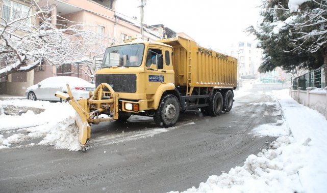Kayseri'de kar yağışının etkisini yeniden göstermesiyle birlikte Melikgazi Belediyesi, 125 aracı ve 300 personeliyle yol açma ve tuzlama çalışmalarına başladı.