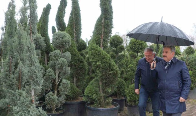 Melikgazi'yi daha yeşil ve sürdürülebilir bir yaşam alanına dönüştürmeyi hedefleyen Melikgazi Belediye Başkanı Doç. Dr. Mustafa Palancıoğlu, belediye fidanlığında aldıkları çınar başta olmak üzere yeni ağaçları ve süs bitkilerini inceledi.
