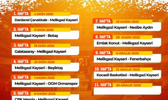 Kadınlar Basketbol Süper Ligi'nde yeni sezon fikstürü belirlendi. Melikgazi Kayseri Basketbol sezonu deplasmanda maçıyla açacak. 2025-2026 sezonunda ilk hafta karşılaşmasında deplasmanda Çanakkale Belediyespor'a konuk olacak olan sarı kırmızılı ekip, ilk yarının son haftasını ise BAY geçecek. Melikgazi Kayseri Basketbol ligin 4.haftada Beşiktaş ve 5. haftada OGM Ormanspor müsabakalarını evinde oynayacak. Melikgazi Kayseri Basketbol'un 11 haftalık ilk yarı lig fikstürü şöyle: