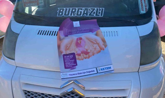 Eskişehir'de servis araçlarına Ekim ayı Meme Kanseri Farkındalık Ayı kapsamında şehir genelindeki servis araçlarına bilgilendirici broşürler yerleştirildi.