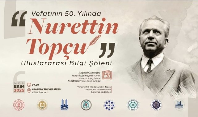Anadolu ve İslam medeniyeti sentezi için çabalayan, "Hareket" dergisinin kurucusu, sosyolog, felsefeci, yazar ve öğretmen Nurettin Topçu'nun vefatının 50. Yılında memleketi olan Erzurum'da anılacak. 24-25-26 Ekim 2025 tarihleri arasında düzenlenecek olan Nurettin Topçu "Uluslararası Bilgi Şöleni", Atatürk Üniversitesi Kültür Merkezi'nde gerçekleşecek. Programda ayrıca "Fikirde İsyan Hayatta Ahlak. Nurettin Topçu İzinde" isimli bir de belgesel sunulacak. Şölen boyunca, Nurettin Topçu'nun fikriyatının yansımaları ve günümüz için değeri ortaya konulacak.