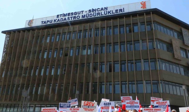 Memur Sendikaları Konfederasyonu (Memur-Sen), 8. Dönem Toplu Sözleşmesi'ne ilişkin Etimesgut Tapu Müdürlüğü önünde eylem düzenledi.
