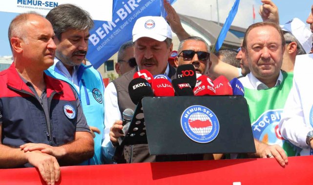 Memur ve memur emeklileri için burada bulunduklarını ve dengesiz ücret dağılımı için haklarını sonuna kadar arayacaklarını belirten Memur-Sen Genel Başkanı Ali Yalçın, "Dün nasıl Anadolu Meydanı'nda 25 bin emekçiyle sesimizi yükselttiysek, bugün burada, adil bir karar verilmesi için Maliye Bakanlığı önünde toplandık, eylemdeyiz. Çünkü karar da sorumluluk da Maliye Bakanı'ndadır. Yaptığımız tüm görüşmelerde taleplerimiz, itirazlarımız konusunda bizi haklı buluyor. Biz, 'hak vermeyin, hakkımızı verin' deyince topu Maliye Bakanlığı'na atıyorlar, bizi anlayışla karşılayın diyorlar. Aileleriyle birlikte 25 milyonu insanımızı bulan memur ve memur emeklisinin tahammülü kalmadı. Biz masada ve salonda anlattık. Herkesle konuştuk. 'Artık bizi anlayın' diyoruz" şeklinde konuştu.