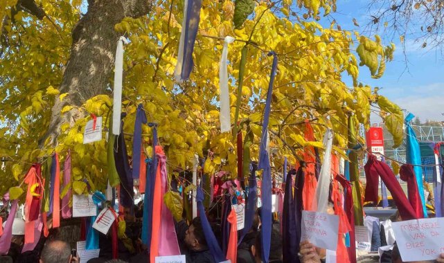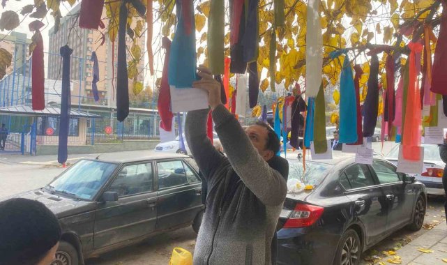 Memurlar bakanlığın önündeki ağacı 'dilek ağacı'na çevirdi