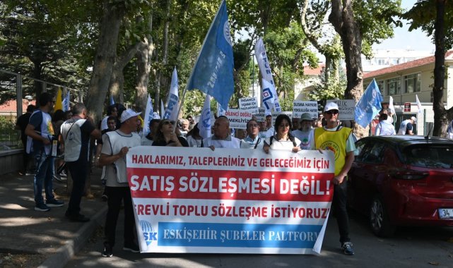 Zam görüşmelerinin sonuç vermemesi sonrası, Eskişehir'de memur ve kamu çalışanları bir günlük iş bırakma eylemi akabinde yürüyüş düzenleyip basın açıklaması yaptı.