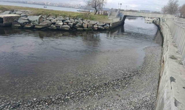 Küçükçekmece Gölü'nün Marmara Denizi'ne bağlanan kısmında Menekşe Deresi çevresinde kuvvetli lodosun etkisiyle biriken kumlar ve suların çekilmesiyle birlikte alçalan su, geçiş yapmaya çalışan teknelere zorluk yaşattı. Suların çekilmesi sonrası ortaya çıkan kum birikintileri ise kameraya yansıdı.