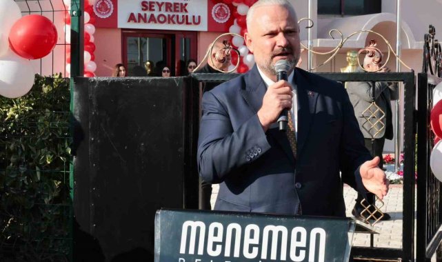 Menemen Belediyesi Seyrek Anaokulu düzenlenen törenle hizmete açıldı. 4 sınıf ve 100 öğrenci kapasiteli modern okulun minik öğrencilerin her türlü ihtiyaçlarına yanıt verecek şekilde tasarlandığını kaydeden Menemen Belediye Başkanı Aydın Pehlivan, "Herkesin şunu çok net bilmesini isterim ki; eğitim dendiği zaman Menemen'de akan sular durur. Menemen Belediyesi'nin kapıları, çocuklarımız ve gençlerimiz için sonuna kadar açılır. Çünkü eğitim;