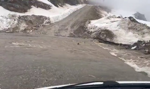 Menfez olmayan yolda sel: Araçlar mahsur kaldı